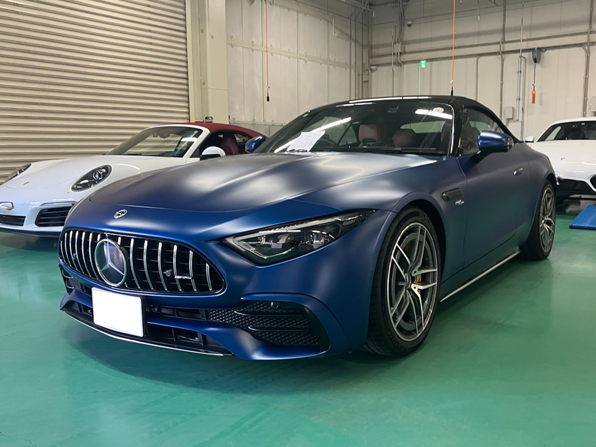 メルセデスAMG SL43買取入庫です! マットブルーのエクステリアがカッコイイ! ご売却誠にありがとうございます。