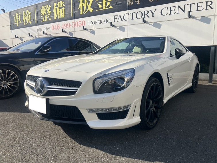 メルセデスベンツ SL63買取入庫です! ダイヤモンドホワイト×ホワイトレザーシートがお洒落な1台! ご売却誠にありがとうございます。